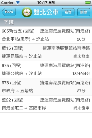 針對台北市與新北市公車按自訂群組加入要查詢的公車路線與站別,即可同時查詢多路線公車即將到站資訊,